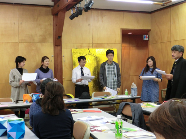 さあ、、、今日は おりがみで 楢の木大学士の野宿 (副題 形成―風化―再生)をみんなで表現します。