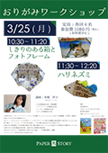 自由が丘にあるかわいい紙もののお店 PAPER STORY の おりがみワークショップのお知らせです。3月25日(月曜日)を予定しております。