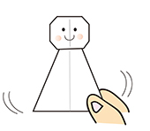 大きく作れば帽子、折り紙で作れば指人形になります。