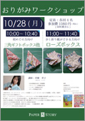自由が丘にあるかわいい紙もののお店 PAPER STORY の おりがみワークショップのお知らせです。10月28日(月曜日)を予定しております。今年最後のワークショップです。ぜひ予約してくださいね。