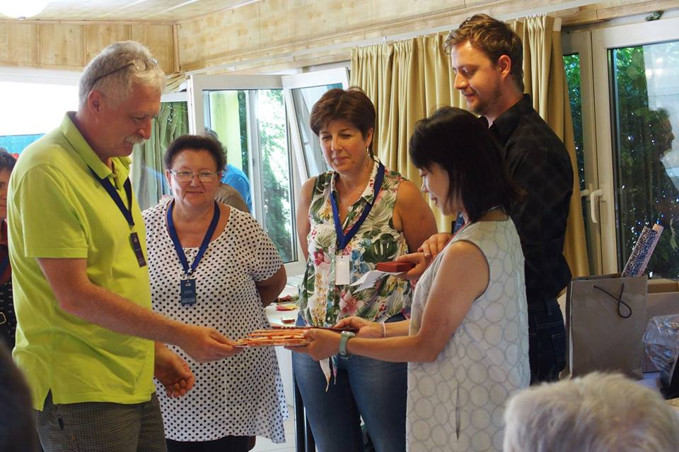 Because it was the 30th Convention, Judit Saji, the current president of the Hungarian Origami Society, made a speech. The society's past presidents, Mariann Villyani and Zsuzsanna Krickskovics also made speeches. All three women spoke about their memories of the society.
