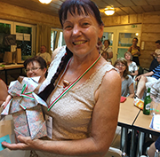 We visited the Toy Museum which is the place where the Hungarian Origami Society was founded 30 years ago. Judit Saji and Zsuzsanna Kricskovics shared their memories from the past. Then Judit taught us three action models: a grasshopper, an inchworm, and a tumbler. All were fun to play with. We also visited the Cifra Palota (Decorated Palace) which is one of the most extraordinary buildings in Kecskemet.